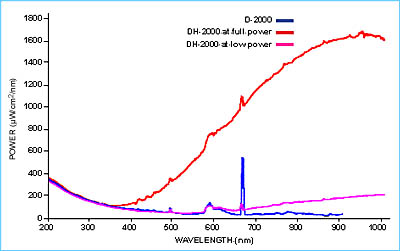 D-2000氘燈光源能夠產生強大的、穩定的215-400nm的輸出光譜。另外,還有紫外增強型(深紫外版本)光源,輸出光譜的范圍為190-400nm。其峰-峰穩定性小于0.005%,漂移僅為+/-0.5%每小時。