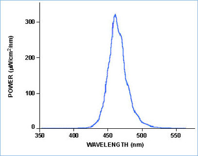 同樣提供LS-450,一種470nm 波長的LED,它可以采用范圍從380nm到640nm的LED。 LS-475可以提供一種相當穩(wěn)定的輸出,并通過內置風扇降低溫度。它有一個SMA 905連接器,這就可以耦合光纖和一個濾光支架,它將放置25.4-mm圓或者50.8-mm方的濾光片,大3-mm厚。該產品附帶一個 800 mA, 12 VDC的電源。 LS-475 LED光源光譜輸出