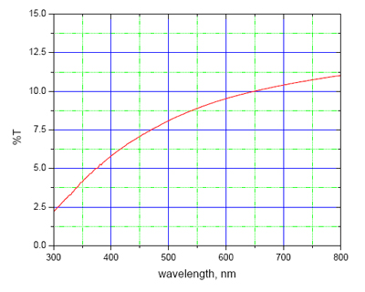 Nickel foil thickness: 25 micron We offer multilayer graphene films that are about 300 monolayers (105 nm) thick on average. These graphene films are grown on nickel foil and continuous across nickel surface steps and grain boundaries. The graphene grown on nickel film is multilayer and is not uniform. It looks like a patchwork whereas the “patches” have different thicknesses. The graphene layers within the same patch are aligned relative to each other (there is a graphitic AB-staking order). The size of the patches is about 3-10 microns. 典型SEM圖像 / 轉移到玻璃基底以后的透過率曲線 |
