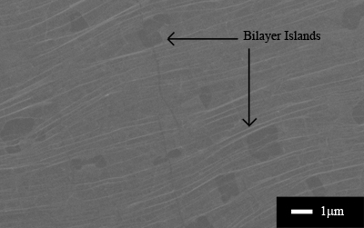 Graphene on nickel is a few monolayers thick, usually between 1-7 layers with an average of 4 monolayer thickness. It looks like a patchwork, whereas each “patch” has a different thickness. The graphene layers within the same patch are aligned relative to each other (there is a graphitic AB-stacking order). The size of each patch is about 3-10 microns. Because graphene on nickel is grown in patches with different layering, the Raman signal will change dramatically depending on the spot of the film where it is taken. If nickel is used as a catalyst, it is not possible to create a graphene sheet with a precise and uniform layering. 典型SEM圖像 / 光學圖像 |
