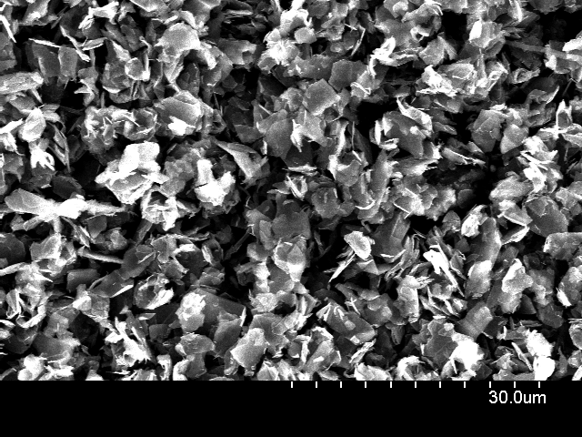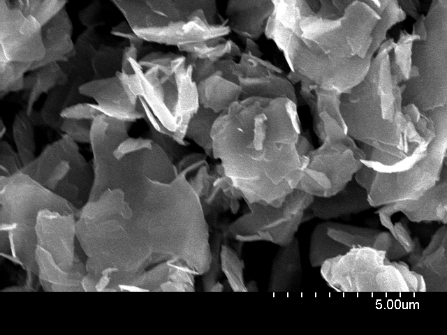 Dry powder Grade AO-4 Specifications: Specific surface area<15 m2/g Color: Black Purity: 98.5% Average flake thickness: 60 nm Particle (lateral) size: ~ 3-7 microns. 典型SEM圖像 |